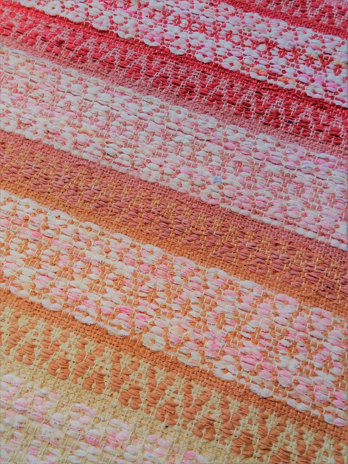 Kutoessani aloin jo jollain tasolla pitämään työstä. Tai ainakin uskomaan, että lopputulos olisi oikein hyvä. Puista kun otin pois niin mielipide olikin taas eri ja mietin, että mitä ruttoa mä oon tehnyt. Varsinkin keskikohdan tummempi punainen ei oikein miellyttänyt.
